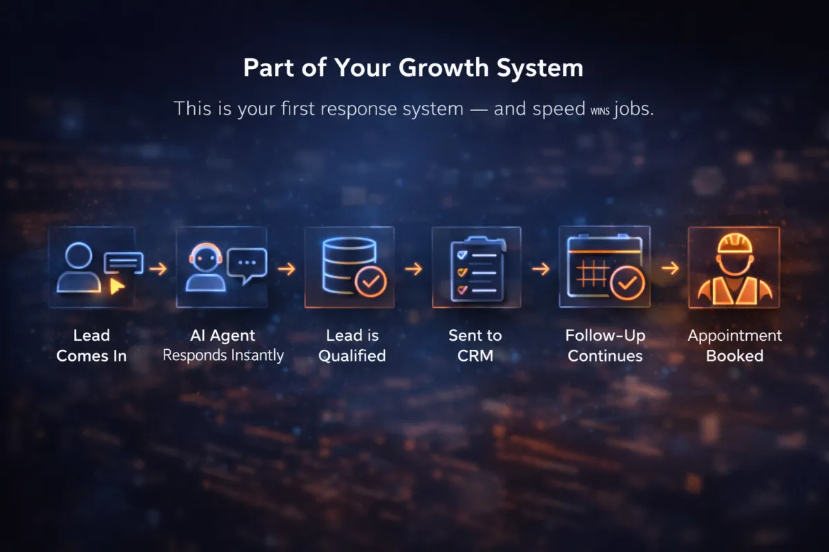 Connects your Website → AI Agent → CRM → Follow-Up → Booking → Job.